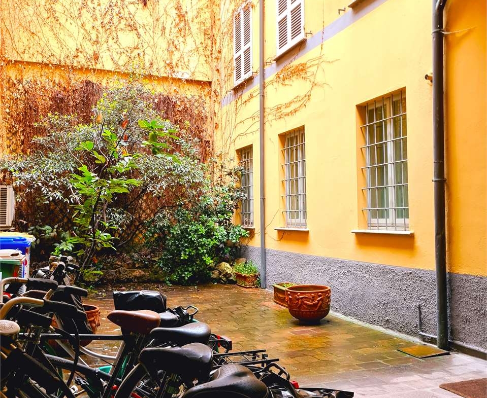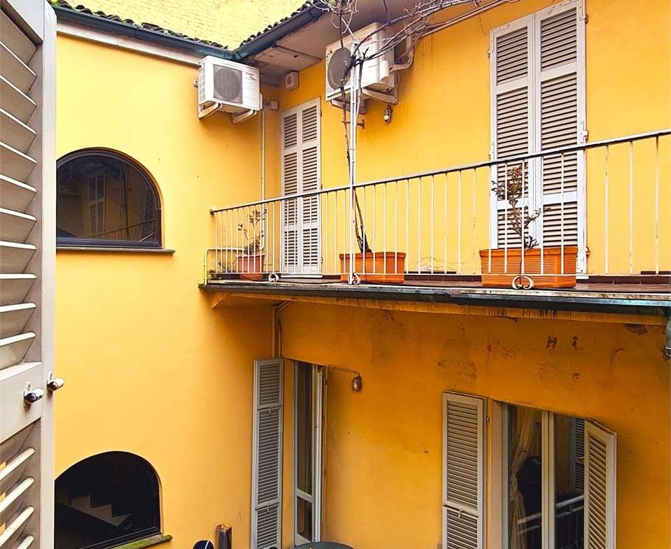 4) Appartamento di circa 116 mq. composto da soggiorno, sala da pranzo, cucina, 3 camere da letto, bagno e ampio terrazzo situato sopra il cortile interno. I pavimenti sono in marmette di graniglia, nel bagno e nel terrazzo in gres smaltato. I muri interni intonacati e tinteggiati, serramenti in legno con vetrocamera e persiane.